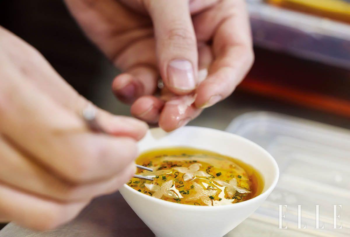 아르노 셰프는 제 역량을 신뢰하며 많은 부분을 일임해 줬어요. “잘할 테니 믿고 맡긴다”는 격려 덕분에 창의적인 시도를 이어갈 수 있었습니다. 아르노 동켈레 셰프가 가장 중요하게 여기는 요소는 바로 ‘소스’입니다. 프랑스 요리의 정수인 소스에 대한 그의 철학이 이번 메뉴에도 깊이 반영돼 있습니다. 한국의 식문화는 대개 소스 드라이브라기보다 밥과 함께 먹는 컨디먼트(Condiment)나 반찬 위주죠. 제이피 앳 루이 비통에서는 소스 위주의 서비스를 강화해 한국적인 맛을 소스 형태로 어떻게 우아하게 풀어낼 수 있을지 끊임없이 고민하고 있습니다.