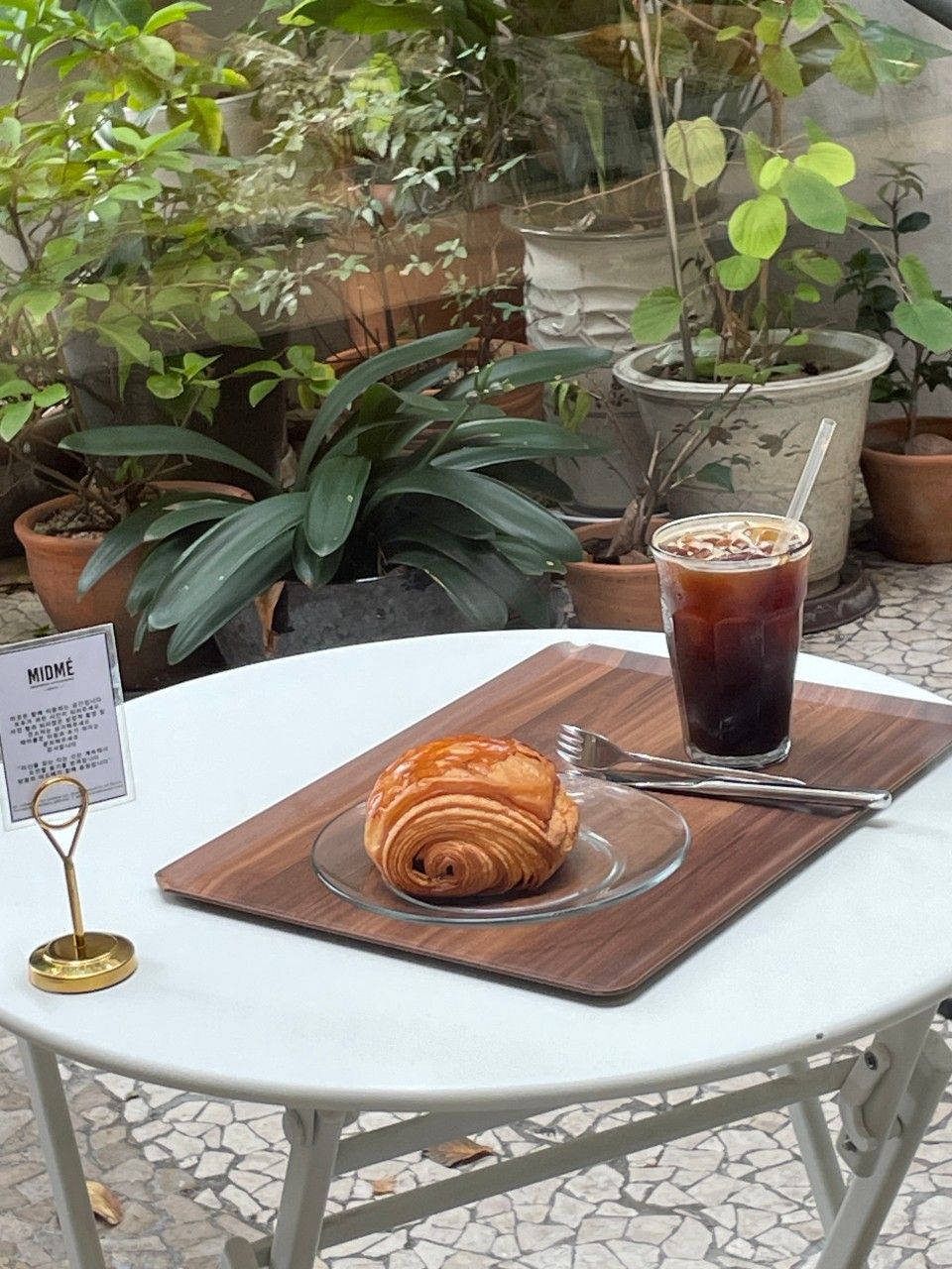 서촌 거리를 따라 경복궁역까지 내려오면 프랑스 감성의 아담한 카페가 하나 나옵니다. 특히 햇살이 내리쬐는 야외 테라스 좌석이 아름다워 날씨만 좋다면 바깥에 앉아 유럽 감성까지 느낄 수 있는 이곳은 서촌 베이커리의 터줏대감 ‘미드메 서촌’. 프랑스풍의 인테리어와 함께 정통 프랑스 베이커리를 맛볼 수 있는 곳이라 빵지순례자들 사이에서도 필수 코스로 유명하죠. 일단 시작은 레몬 마들렌부터. 상큼한 레몬향에 뻑뻑하지 않고 부드러운 식감의 마들렌은 입맛을 돋우고요. 뱅 스위스, 뱅 오 쇼콜라, 크루아상 등 페이스트리의 섬세한 식감이 중요한 베이커리 류의 품질이 훌륭합니다. 결이 곱고 매우 가벼우며 얇게 부서지기 때문에 입 안에서 실시간으로 ASMR을 느낄 수 있어요. 이곳의 휘낭시에는 특히 쫄깃한 맛이 강해서 마치 떡을 먹는 듯한 착각을 불러일으킬 정도라네요. 이곳도 결국 두바이 열풍의 침공(?)을 받아 얼마 전부터 두쫀쿠를 개시했는데, 정통 베이커리에서 만든 두쫀쿠는 뭐가 달라도 다른 모양입니다. 곳곳에 프랑스의 바이브를 연출하기 위한 디테일들이 숨어있으니, 날이 좀 더 풀리면 예쁜 코트를 걸쳐입고 해외여행 가듯 다녀오는 것도 좋겠네요!