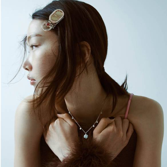 (위) 크리스털 메시 백은 가격 미정, Gucci. 플라워 모티프의 이어링은 2백만원 대, Buccellati.