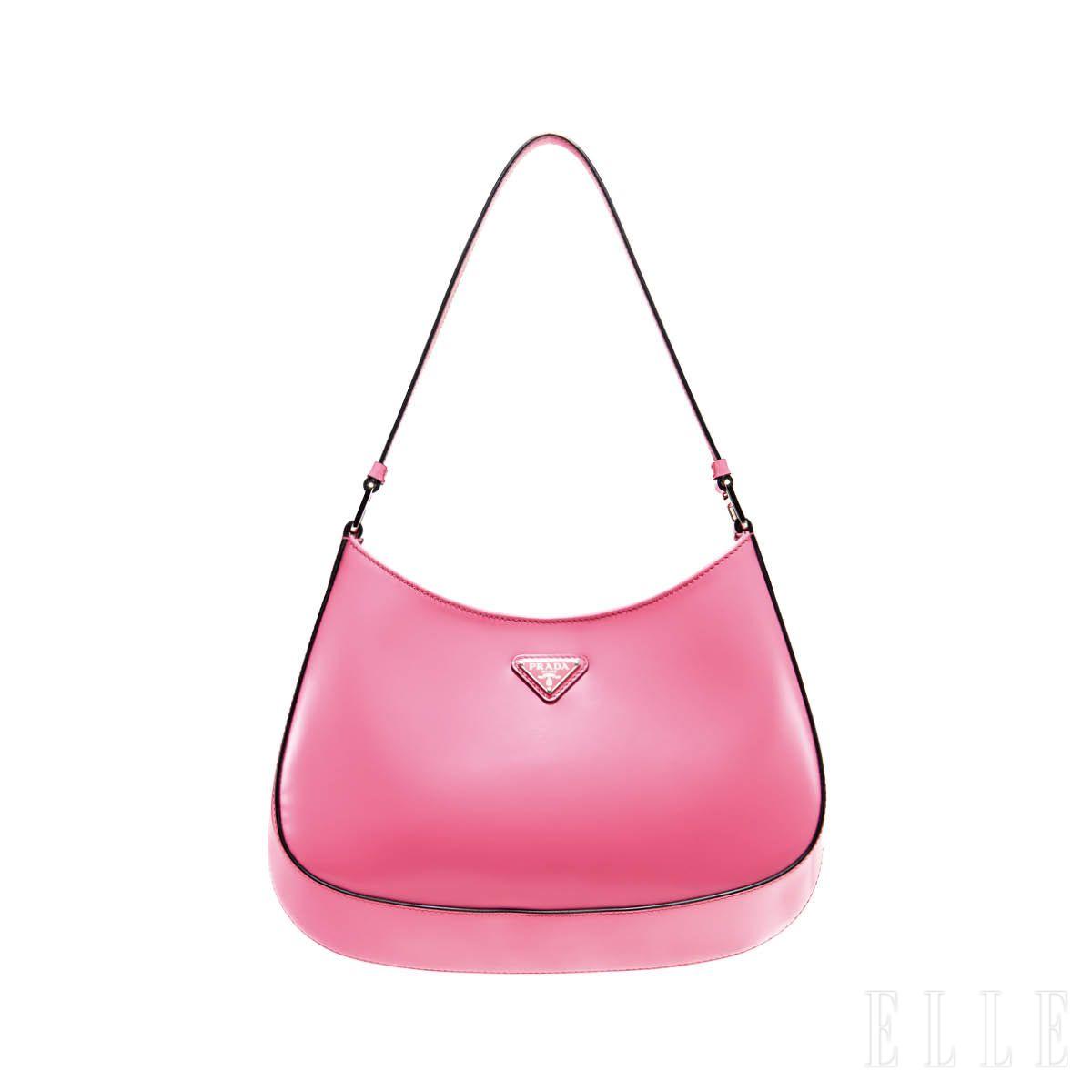 로고 포인트의 사랑스러운 핑크 컬러 숄더백은 가격 미정, Prada.