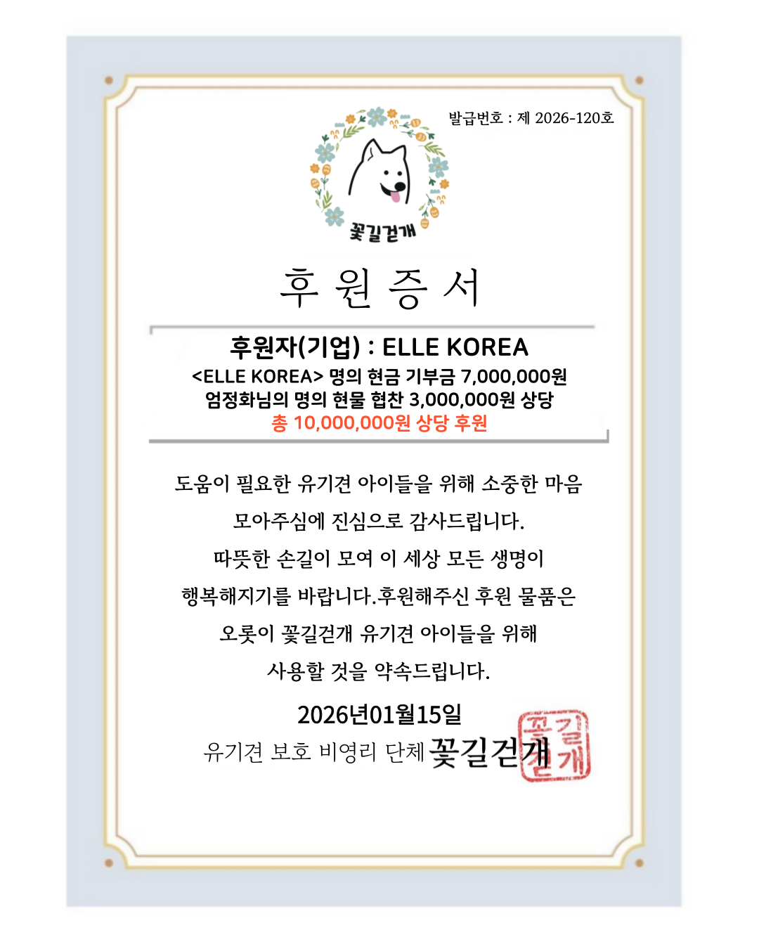 시간과 마음을 기꺼이 쏟아부어 이 프로젝트에 참여해준 모든 스타들과 사람과 동물을 연결하는 브랜드, 그리고 그 선택이 닿은 보호소와 활동가들에게 <엘르>는 깊은 감사를 전합니다. ‘헬로 리틀 러브’는 한 번의 프로젝트로 끝나지 않습니다. <엘르>는 앞으로도 세상 모든 작은 존재들을 향해, 질문하고, 기록하고, 책임지는 방식으로 나아갈 것입니다.