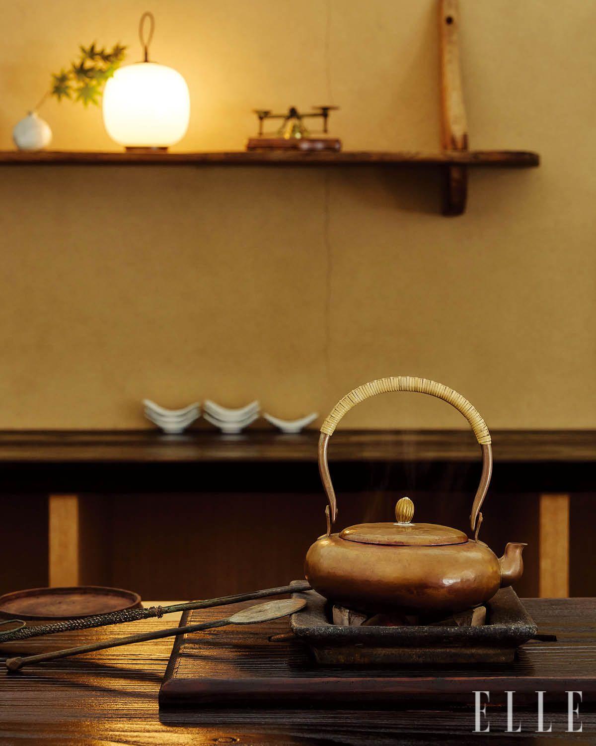 숯에 불을 피우기까지 걸리는 시간은 40분. 로해는 이 화로에 천천히 물을 끓여 차를 우린다.