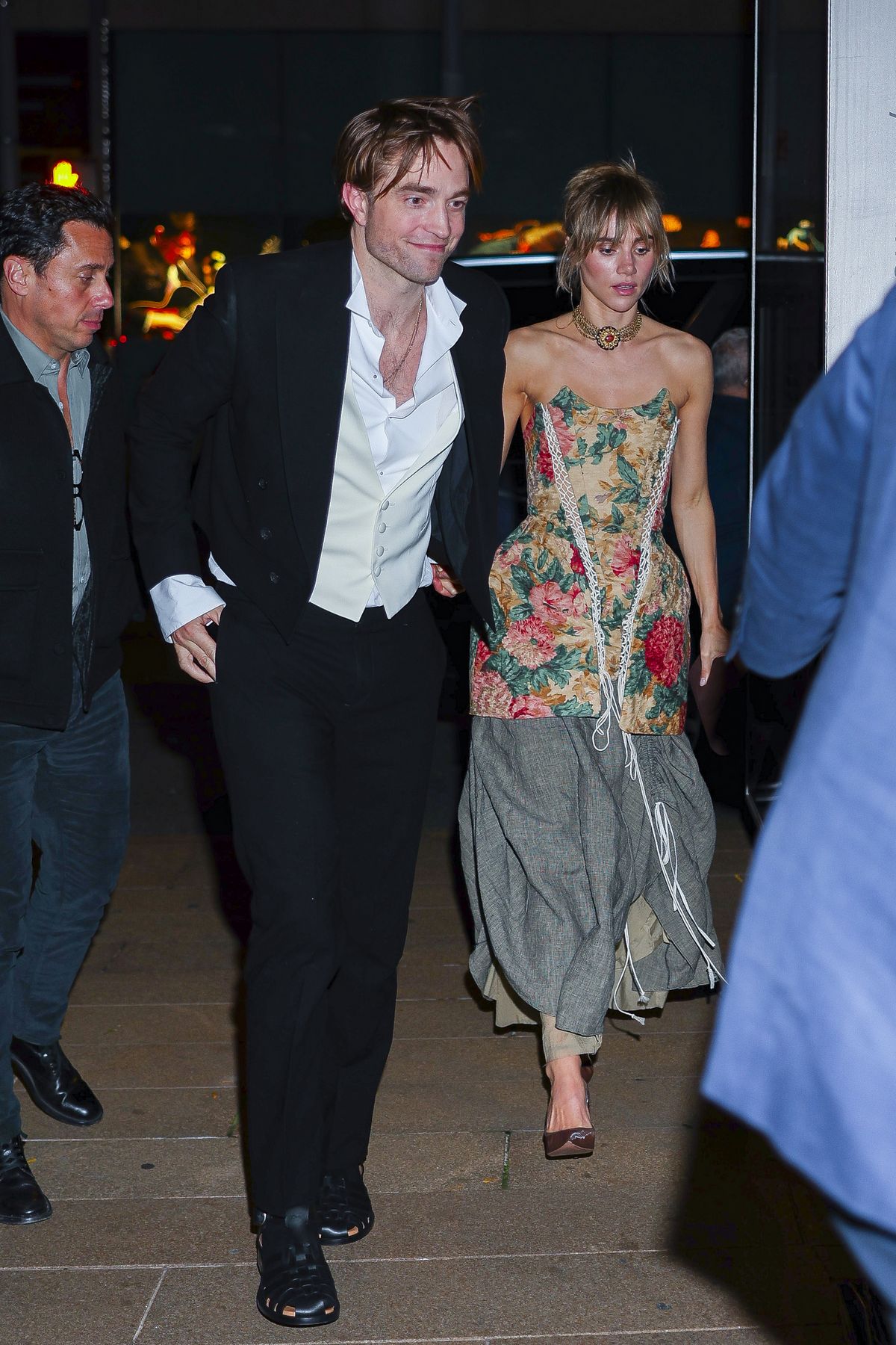 수키 워터하우스는 스트랩 없이 코르셋 디테일을 더한 플로럴 드레스로 시선을 모았습니다. 그녀가 선택한 드레스는 조이 구스타비아 안나 웨일런의 2026 봄 여름 컬렉션으로, 중세 빅토리아 풍의 로맨틱한 분위기가 돋보이는 룩이었는데요. 여기에 발가락이 훤히 드러나는 플랫 슈즈를 매치해 드레시한 무드에 가벼운 반전을 더했습니다. 한편 로버트 패틴슨은 조나단 앤더슨이 제작한 커스텀 수트를 착용해 같은 결의 로맨틱한 무드를 이어갔죠. 네크리스가 드러날 만큼 셔츠 단추를 풀어헤쳐 특유의 퇴폐적인 분위기를 연출했고, 레더 스트랩 샌들로 포멀함을 덜어냈죠. 의상은 로맨틱한 결로 맞추되, 신발 만큼은 두 사람 모두 가벼운 선택으로 균형 잡힌 스타일링을 완성했습니다.