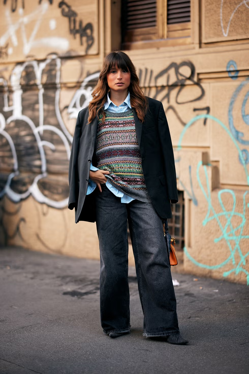 니트 시즌이 다가오면 배기 진은 더욱 빛을 발합니다. 페어아일 패턴 니트에 셔츠를 레이어드하고, 그 위에 블레이저를 더해보세요. 더하고 벗는 과정 자체가 스타일링의 일부가 될 테니까요. 편안함과 세련됨을 동시에 잡는 가장 현실적인 조합이군요.