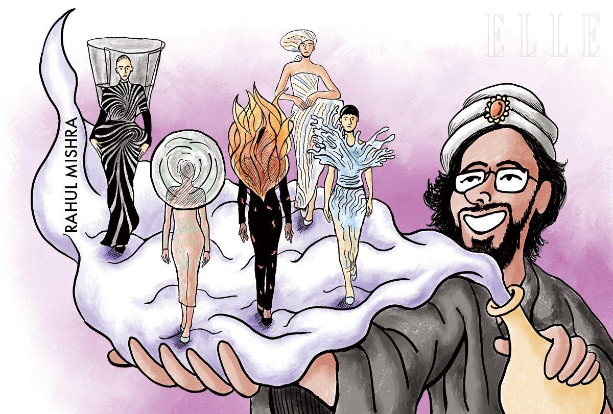 」우주 속 가상의 물질, 에테르와 세상을 이루는 물·불·공기·흙. 다섯 가지 원소를 옷으로 풀어내겠다는 라훌 미슈라의 야심. 연금술사가 되고 싶었을까? 빛을 머금은 표면, 흐르듯 겹쳐진 자수, 불꽃같은 실루엣은 마치 패션 실험실을 본 것 같은 느낌!