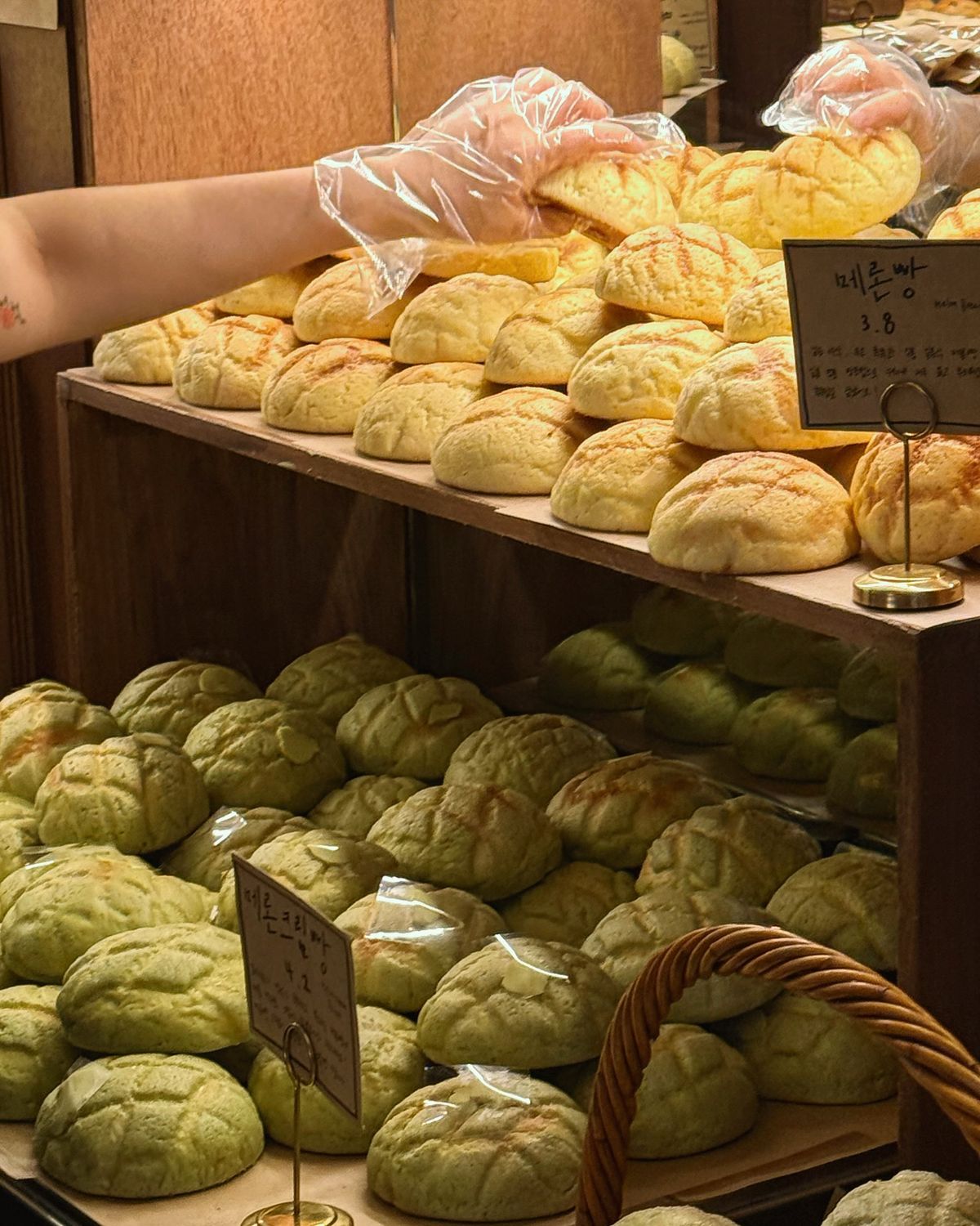 」힙지로에서 메론 빵으로 히트 친 빵집 ‘아소토 베이커리’도 미미의 레이더에 포착된 곳입니다. 일본 전통 방식으로 구워낸 메론빵을 중심으로, 야끼소바빵, 소금빵, 카레빵까지 현지의 정서를 담은 베이직 메뉴와 트렌디한 메뉴를 유연하게 넘나드는 라인업을 갖추고 있습니다. 매혹적인 빵 진열대에서 고민을 멈출 수 없었던 미미는 시그니처인 메론 소금빵과 메론 크림빵, 초코 소라빵 등을 포함해 8만 원대의 빵 플렉스를 인증했고요.