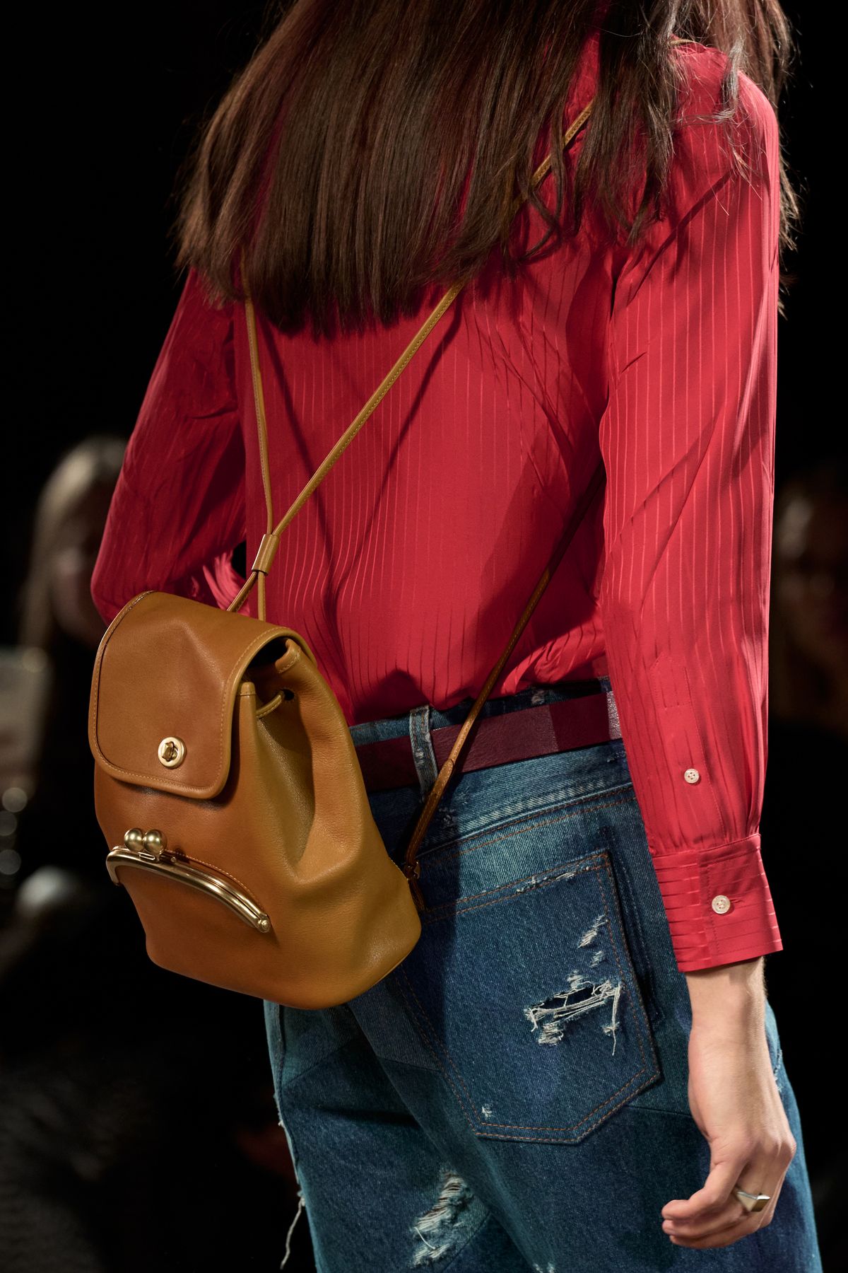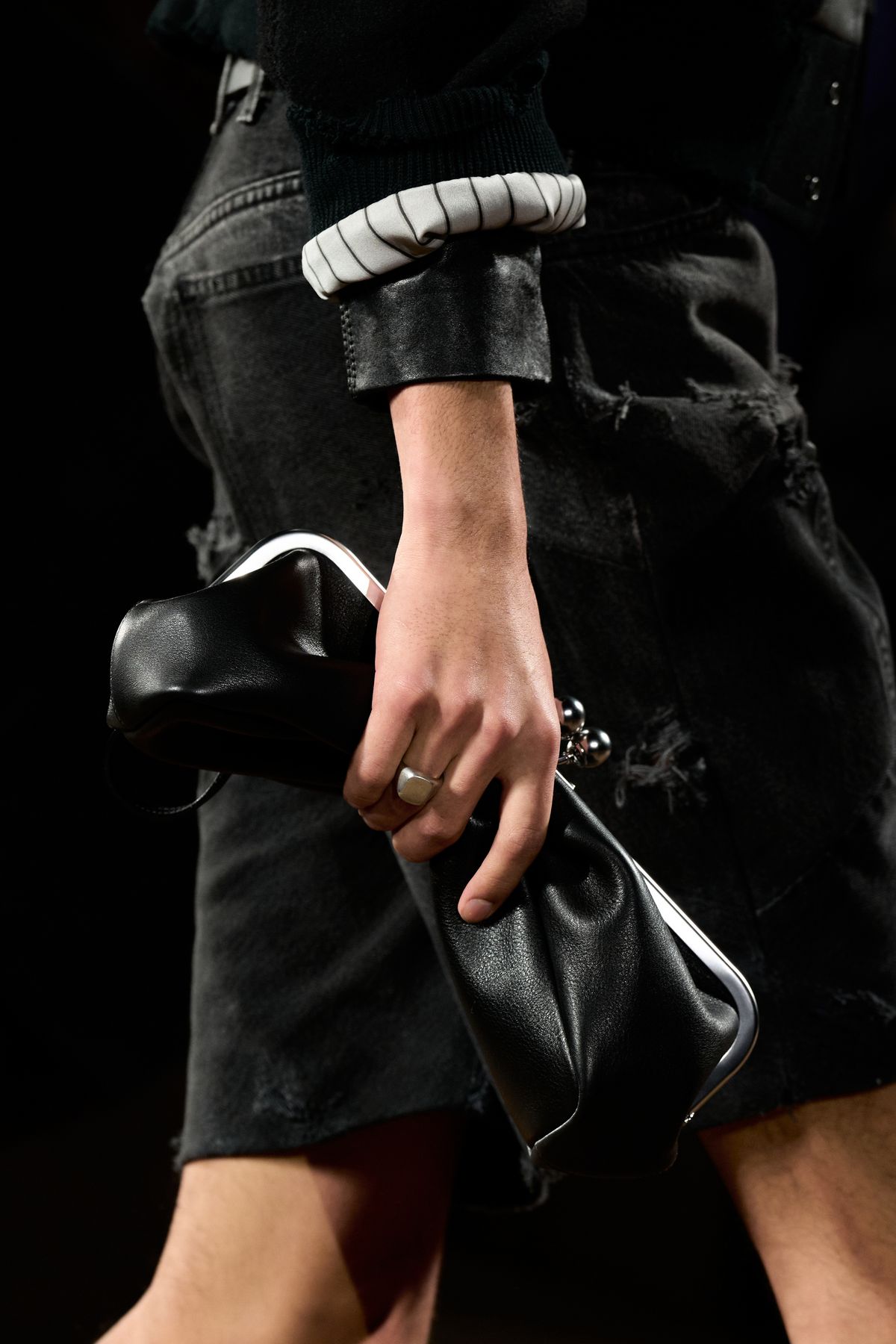 가죽 아이템은 동서로 길게 뻗은 실루엣이 특징. 하우스의 턴록(Turnlock)과 키스록(Kisslock) 하드웨어를 활용한 백 시리즈가 눈길을 끈다. ‘키스록 프레임 백’은 어깨 아래 자연스럽게 닿는 미니멀한 형태로, 헤리티지 톤의 아몬드·메이플 컬러와 체크 울 버전으로 선보인다. ‘턴록 해버색(Haversack)’과 ‘턴록 메신저 백’은 기능적이면서도 빈티지 감성을 더한다.