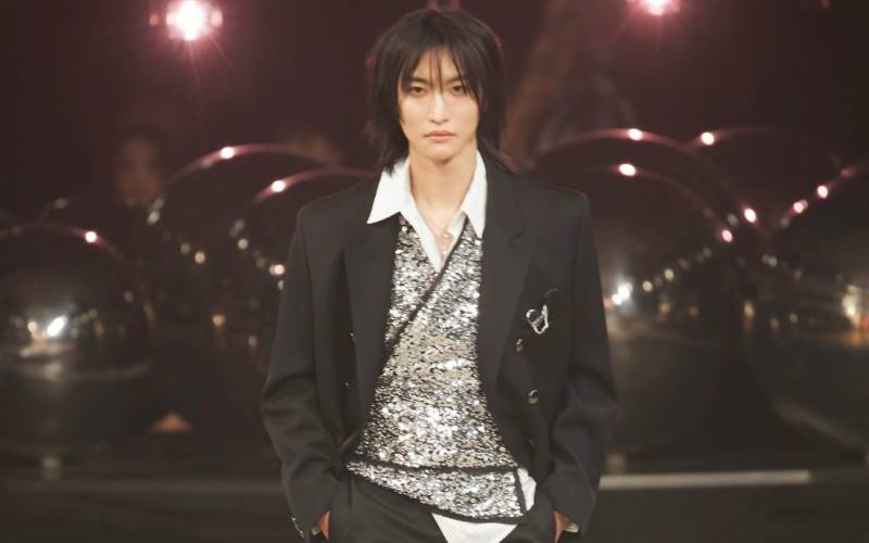 돌체앤가바나 2026 가을 겨울 컬렉션 쇼가 있던 날, 에이티즈 산은 카메라 앞에서 워밍업을 하듯 몸을 풀었다.