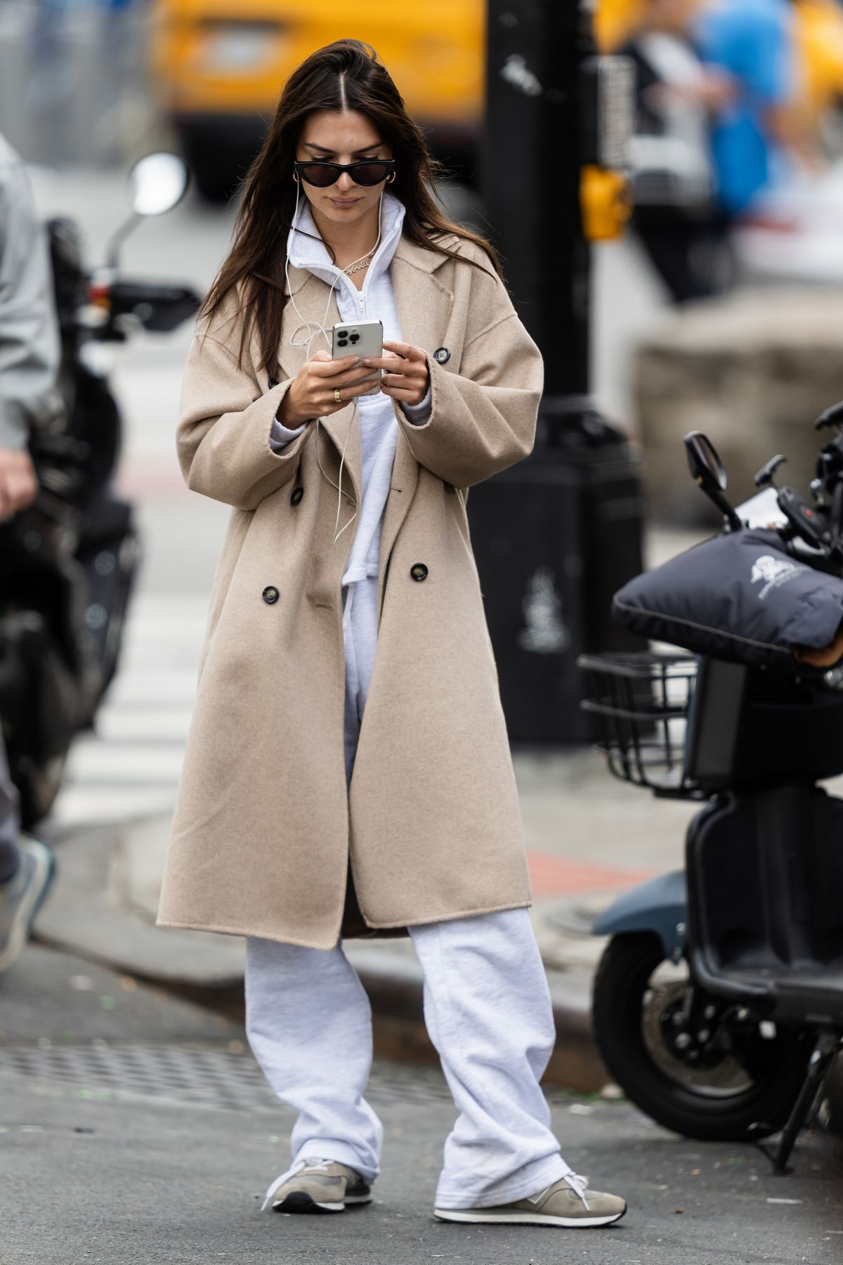 슈퍼모델이라고 해서 늘 완벽하게 차려입는 것은 아닙니다. 에밀리 라타이코프스키 역시 스웨트팬츠와 후디를 즐겨 입는 것으로 잘 알려져 있죠. 다만 그의 스타일에는 항상 포인트가 있습니다. 디자이너 백이나 선글라스 같은 액세서리를 더해 캐주얼 룩을 한 단계 끌어올리는 방식이죠. 특히 그레이 컬러의 미니멀한 스웨트 수트는 그 어떤 상황에도 잘 어우러려 여행 룩으로 아주 손색없는 선택지입니다.