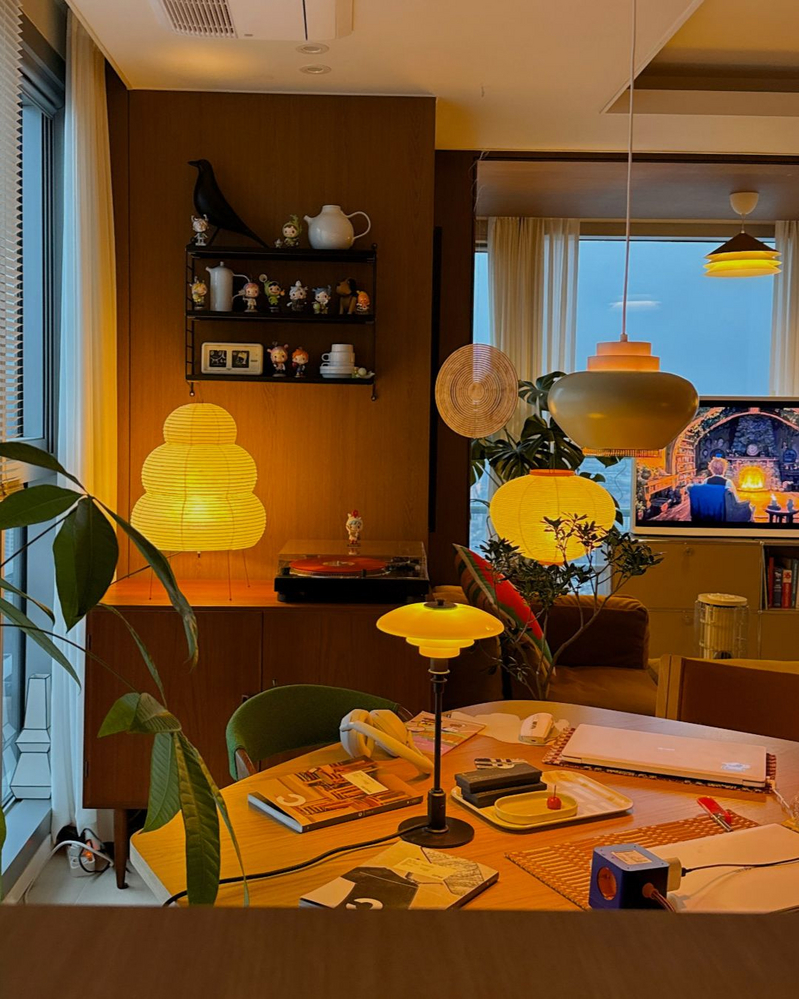 천장 등을 밝게 켜기보다는 간접 조명을 선호해, 손이 닿는 자리마다 작은 조명을 두어 은은한 빛이 머물도록 합니다.