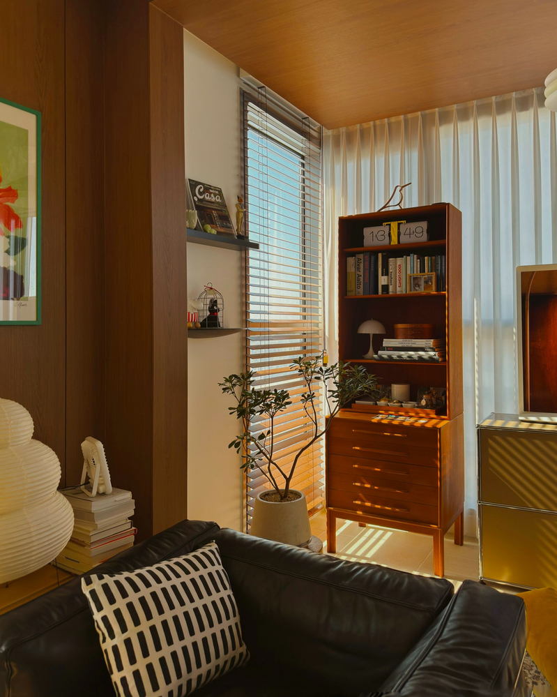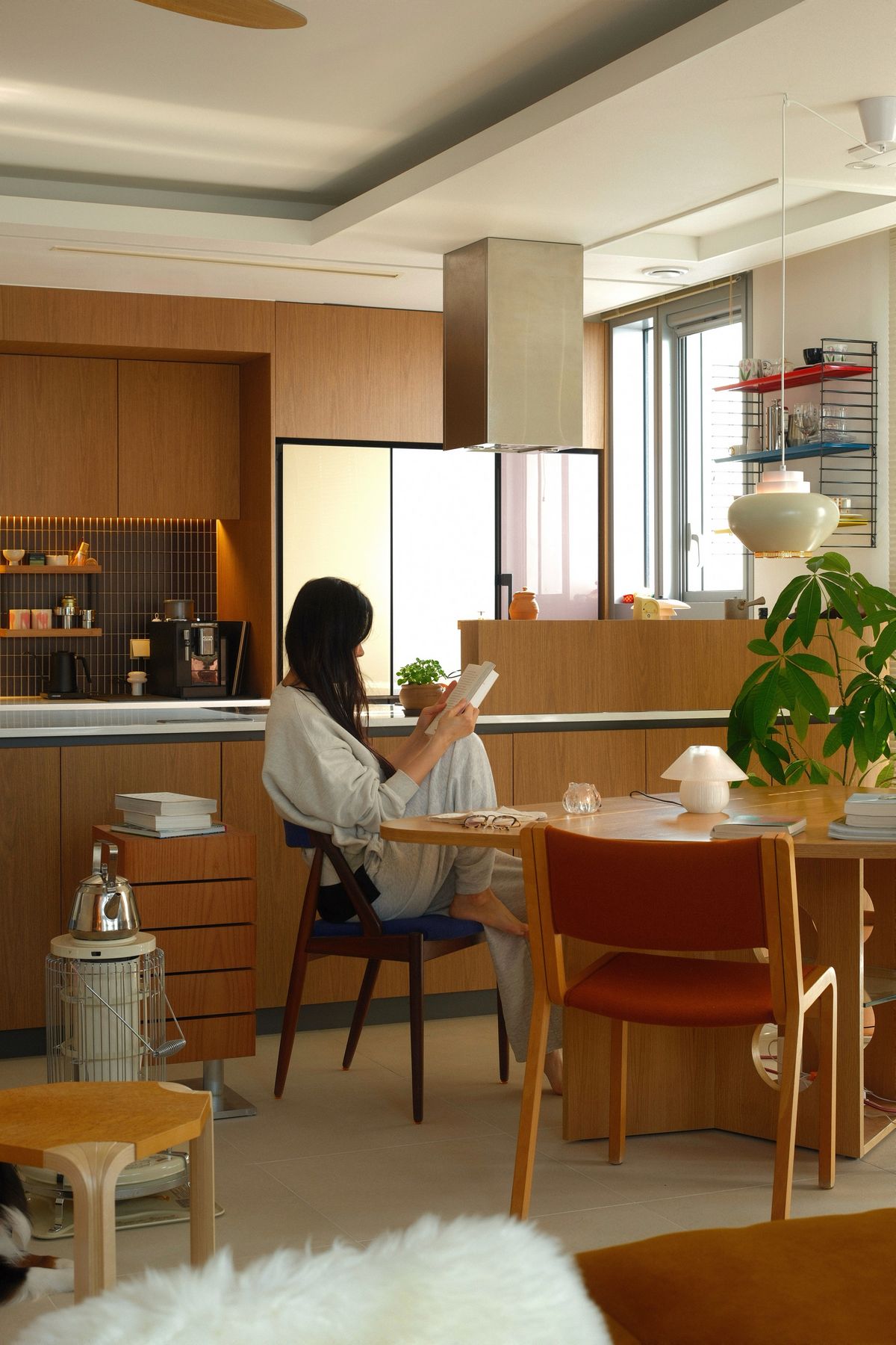 부부의 취향이 가장 많이 담긴 공간이라 차분한 우드 톤을 기본으로 유지하고 있습니다. 무엇보다 ‘쉼’을 느낄 수 있는 편안함을 가장 중요하게 생각합니다.