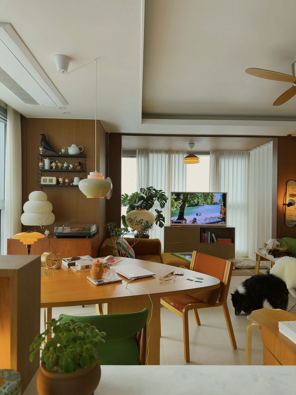 다만 우드 가구로만 공간을 채우면 자칫 무겁거나 올드해 보일 수 있어, 모던한 가구와 믹스 매치하며 균형을 맞추고 있습니다. 저희 집은 지금도 계속 변화하고 있는 ‘진행형’ 공간입니다.