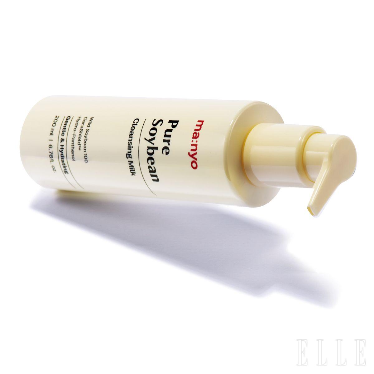 지리산표 돌콩을 곱게 갈아 만든 퓨어 소이 밀크™이 얼굴에 수분을 가득 채워 세안 후에도 스킨케어를 한 것처럼 물기 어린 피부를 선사한다. 퓨어 소이빈 클렌징 밀크, 2만1천원, Ma:nyo.