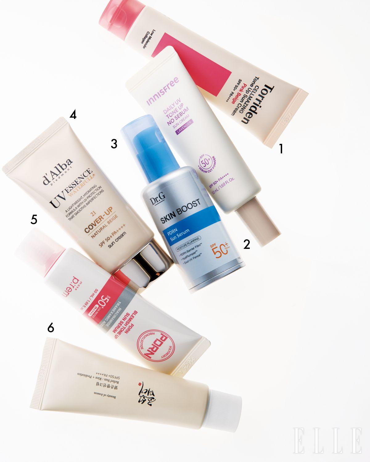 1 핑크와 베이지 사이의 완벽한 톤 균형으로 자연스러운 피부 생기를 연출해 주는 셀메이징 핑크베이지 톤업 선크림, 2만5천원, Torriden. 2 얇게 한 겹만 발라도 자외선 차단은 물론 과도한 유분은 잡아주고, 모공은 매끈하게 감춰주는 기능을 탑재했다. 데일리 유브이 톤업 노세범 선크림 라벤더, 2만원, Innisfree. 3 수분을 빠르게 흡수하는 팽창 히알루론산에 마이크로 PDRN, 콜라겐을 결합한 포뮬러로 자외선으로부터 피부를 보호하는 동시에 피부 장벽 깊숙이 수분을 채우는 스킨부스트 PDRN 선 세럼, 3만2천원, Dr.G. 4 피부 채도를 섬세하게 분석한 컬러가 피부 결과 피부 톤을 보정해 준다. 워터풀 톤업 선크림 내추럴 커버 베이지, 3만6천원, D’alba. 5 자외선으로 생기는 잡티를 방지하는 건 물론이고 숨어 있는 잡티까지 케어해 준다. 나이아신아마이드, 글루타치온, 트라넥삼산을 더해 얼룩덜룩한 피부 톤을 고르게 만드는 PDRN 잡티 톤업 선세럼, 2만6천원, Makep:rem. 6 쌀 발효 컴플렉스와 프로바이오틱스 성분이 자외선으로 자극받은 피부를 진정시켜 준다. 가볍고 산뜻한 텍스처가 돋보이는 맑은쌀 선크림, 1만8천원, Beauty of Joseon.
