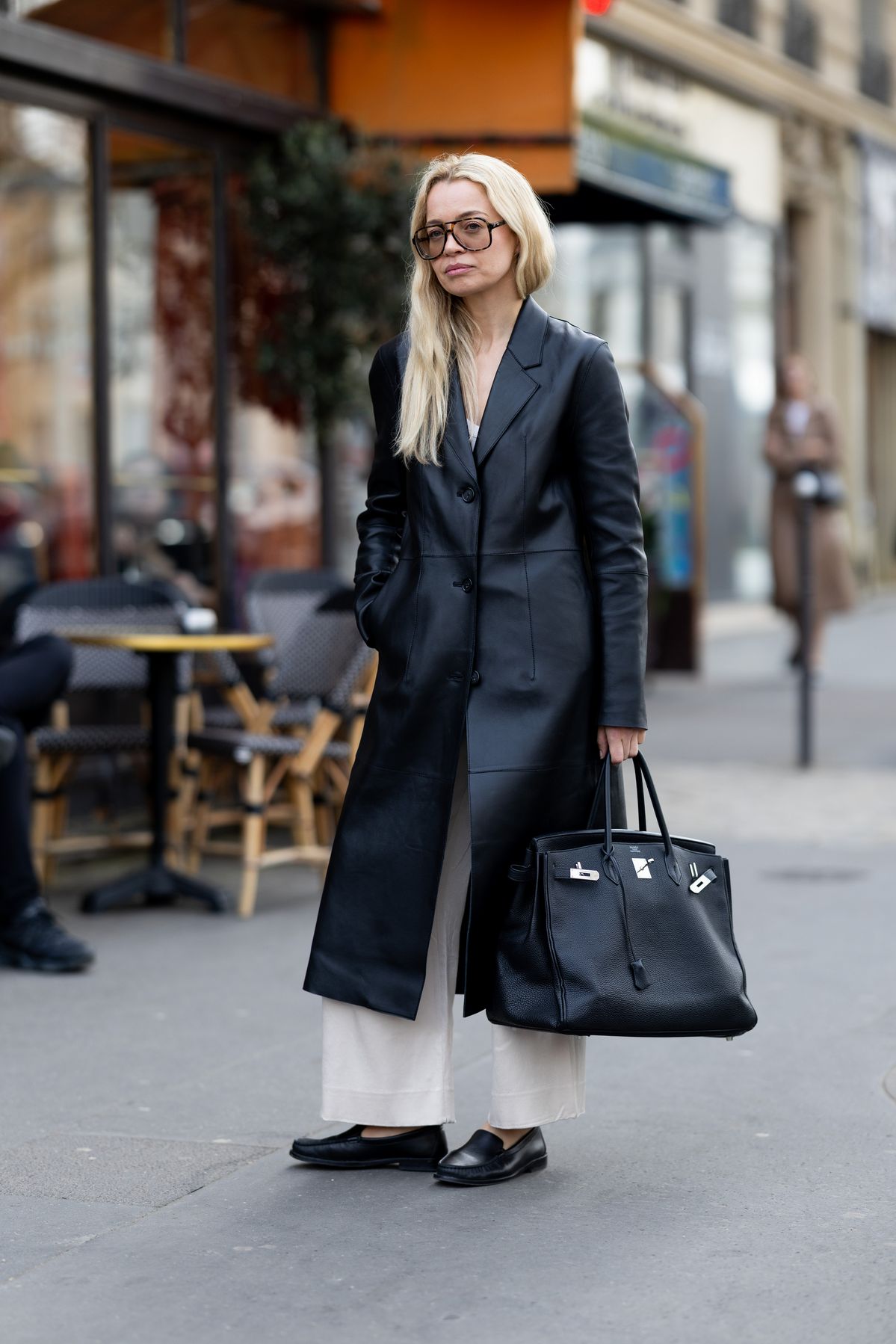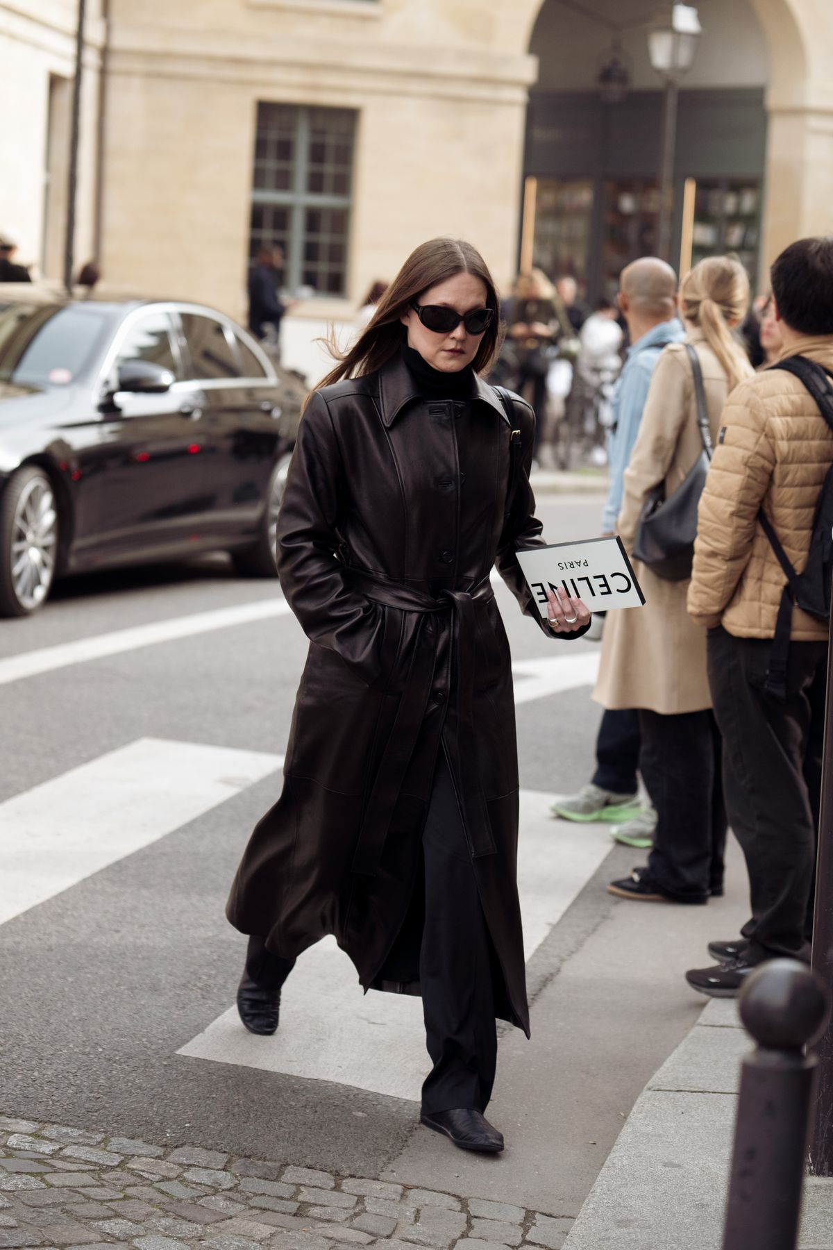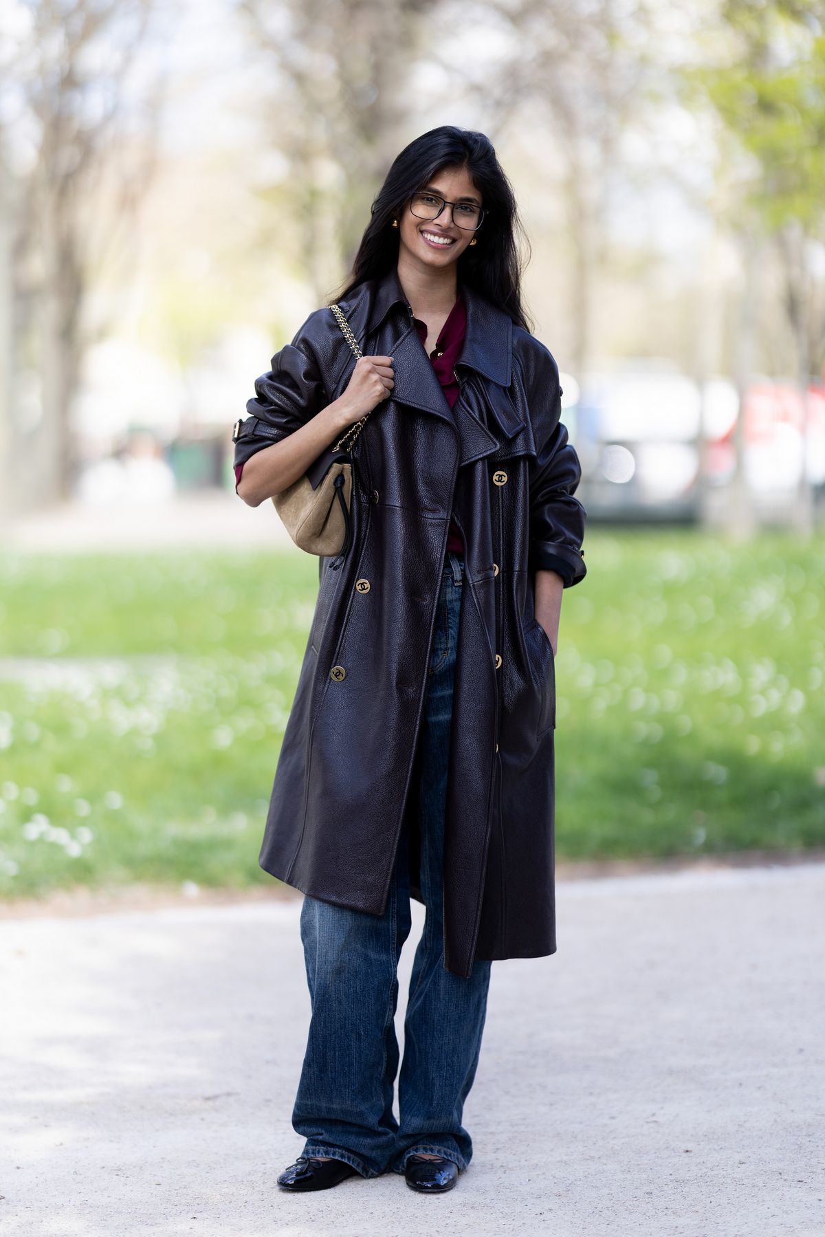 가장 전통적인 선택지는 역시 더블 브레스티드 트렌치 코트입니다. 견장 디테일과 구조적인 실루엣은 전후 시대 이후 대중적으로 자리 잡은 클래식의 정수를 보여주죠. 바비타 만다바가 샤넬 쇼장 밖에서 선보인 스타일링은 이를 잘 보여줍니다. 소재가 가죽으로 바뀌었을 뿐, 트렌치코트 특유의 균형 잡힌 비율은 그대로 유지된 모습이죠. 데님과 카디건 위에 툭 걸치는 것만으로도 봄 내내 어렵지 않게 활용 가능한 데일리 룩이 완성됩니다. 클래식은 결국 가장 오래 살아남는다는 사실을 다시 한번 깨닫게 되는 순간입니다.