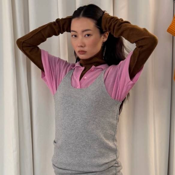 카프리 팬츠의 스포티한 매력을 살리면서도, 소녀다운 분위기를 가미한 복고풍의 스타일링이 눈에 띄어요. 톱모델 수주 역시 카프리 팬츠와 함께 극단적인 크롭트 실루엣의 재킷과 헤어밴드로 레트로하면서도 발랄한 룩을 연출했죠. 슬림한 핏의 팬츠를 돋보이게 하는 날렵한 실루엣의 플랫 슈즈를 매치한 점 또한 중요한 포인트. 선글라스나 힙 색 역시 복고적인 무드를 더하는 좋은 액세서리가 될 수 있어요.