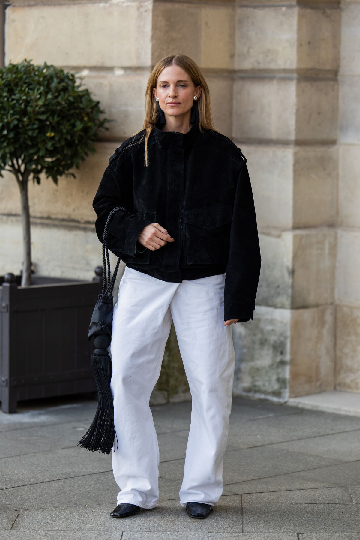 화이트 진이 캐주얼하다는 편견은 이제 내려놓아도 좋습니다. 깔끔한 화이트 톱, 오버사이즈 블레이저 그리고 힐을 더하면 충분히 포멀한 무드를 연출할 수 있습니다. 특히 상·하의를 화이트 톤으로 맞춘 뒤, 아우터로 구조감을 더하는 방식은 세련된 오피스 룩의 정석으로 통합니다. 무엇보다도 이 룩의 장점은 얼마든지 응용이 가능하다는 점입니다. 액세서리나 슈즈만 바꿔도 전혀 다른 분위기를 연출할 수 있는 만큼 바쁜 아침에도 빠르게 완성도 높은 룩을 만들 수 있죠.