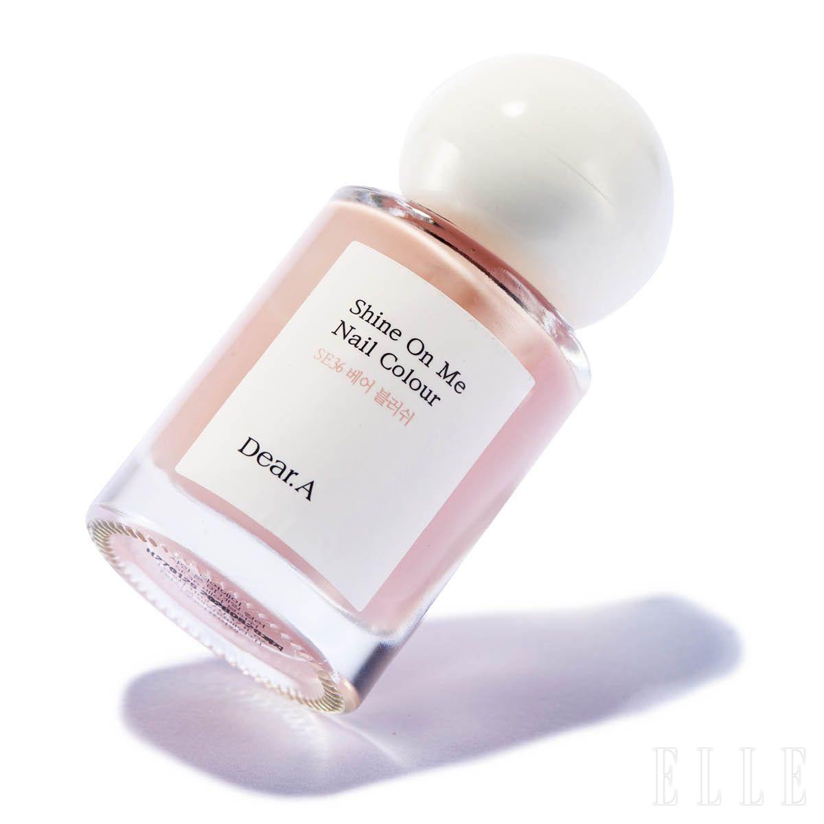 서툰 손재주에도 붓 자국 없이 매끈하게 발리는 ‘레전드’ 아이템! 뭉침 없이 고르게 손톱을 코팅시킨다. 마치 젤 네일을 한 것처럼 딸기 우유 컬러가 선명하게 올라오는 샤인 온 미 네일 컬러, SE 36 베어 블러쉬, 1만2천원, Dear.A.
