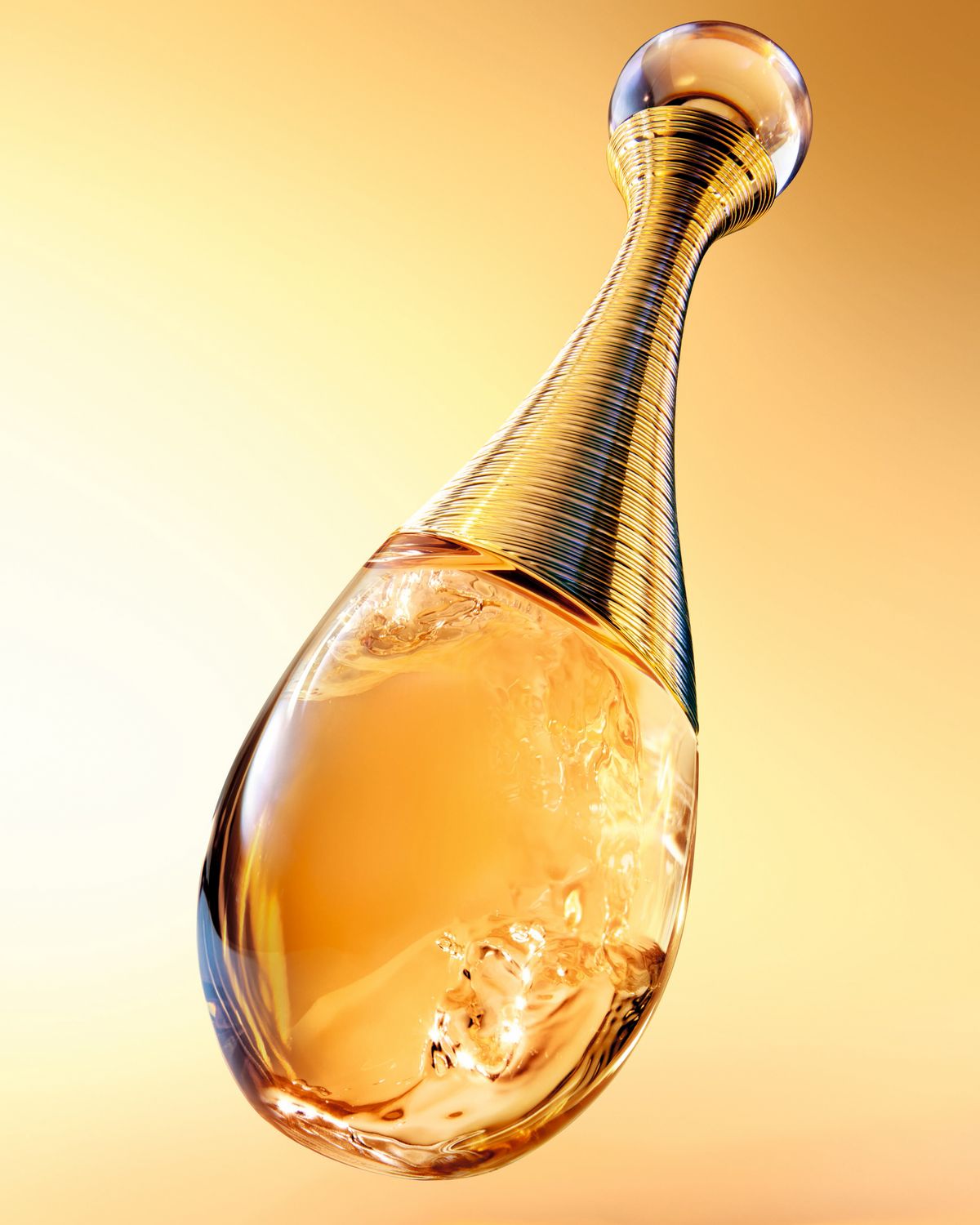 부드러운 곡선의 암포라 보틀은 우아하면서도 모던한 실루엣을 자랑한다. 길고 슬림한 넥 라인에 더해진 황금빛 펄과 투명한 물방울 장식은 보석 같은 존재감을 더한다. 흐르는 듯한 관능적인 곡선과 금빛 광채가 만나 ‘쟈도르 엥땅스’ 특유의 세련된 인상을 선명하게 드러낸다.