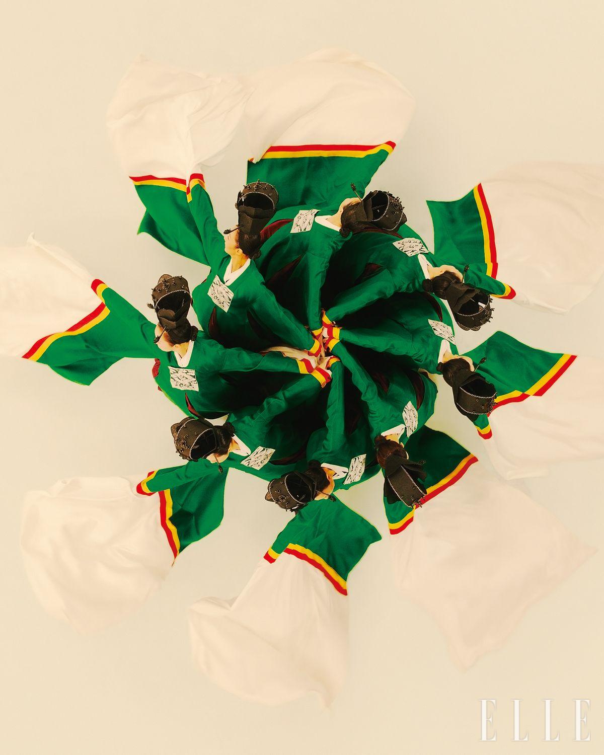2막 궁중무연구 : ‘춘앵무’ 버드나무 가지에서 맑게 지저귀는 꾀꼬리의 모습을 딴 춘앵무의 의상은 현대적으로 재해석한 녹원삼으로 소매에 한삼을 덧대 극적인 실루엣을 연출한다.
