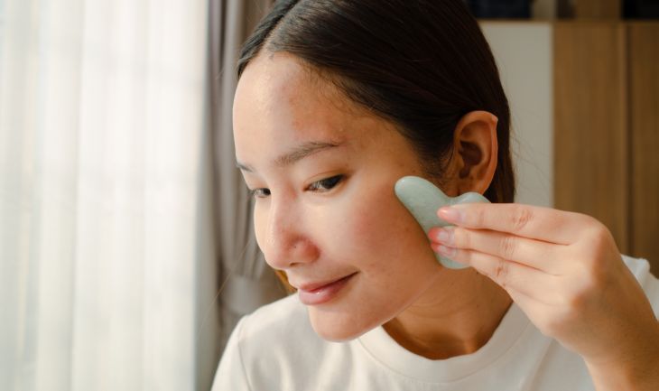 방향은 아래에서 위, 안쪽에서 바깥쪽으로 진행하는 것을 기본으로 피부 속 근육을 이완시킨다는 느낌으로 천천히 움직입니다. 강한 압력이나 잘못된 사용을 피할 것. 하루 5~10분 이내로 사용할 것. 그리고 트러블 부위는 피하고, 괄사 사용 후에는 반드시 세척해 위생 관리를 유지하는 것이 중요합니다.