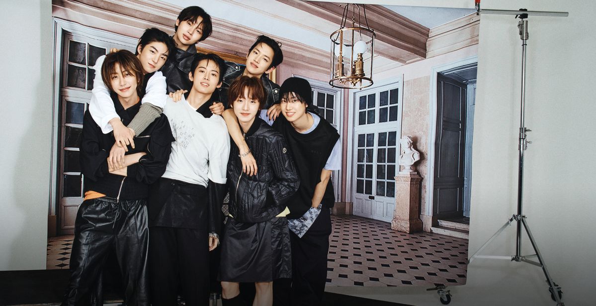 왼쪽부터 원빈이 입은 재킷은 Staffonly by Adekuver. 피케 셔츠는 Lacoste. 레더 팬츠와 슈즈는 에디터 소장품. 준혁이 입은 슬리브리스 톱과 팬츠는 모두 Y-3. 티셔츠와 니트 워머는 모두 에디터 소장품. 유찬이 입은 레더 재킷은 Re Rhee. 팬츠는 Bape. 용훈이 입은 수트와 티셔츠는 모두 Maison Margiela. 슈즈는 에디터 소장품. 민재가 입은 재킷은 Onitsuka Tiger. 세민이 입은 재킷과 쇼츠, 삭스는 모두 Moncler x Rick Owens. 샌들은 Dr. Martens. 티셔츠는 에디터 소장품. 성현이 입은 슬리브리스 톱과 팬츠는 모두 Juun.J. 티셔츠는 Gimaguas. 스니커즈는 Maison Margiela. 팔찌는 Vaxine.