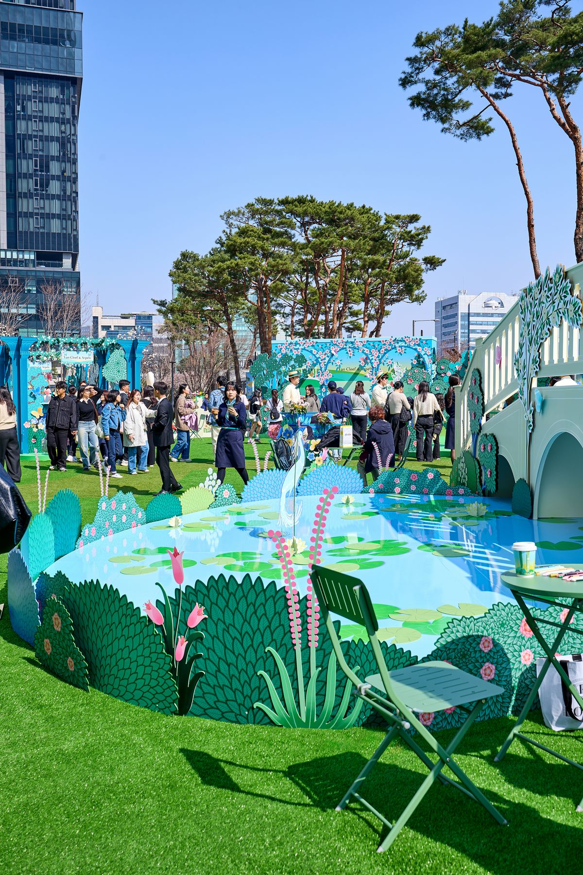 나비와 새가 날아다니는 정원, 꽃이 만개한 길 그리고 중앙을 가로지르는 다리와 그네, 벤치에선 바쁜 도심 한가운데에서도 한껏 여유를 즐길 수 있습니다. 잠시 앉아 쉬거나 천천히 걸으며 풍경을 바라보는 것만으로도, 이곳이 서울 한복판이라는 사실을 잊게 만드는 순간이 이어지죠. 자연과 쿠튀르 그리고 상상의 세계에서 영감을 얻는 메종의 미학을 고스란히 하나의 공간으로 옮겨온 결과입니다.