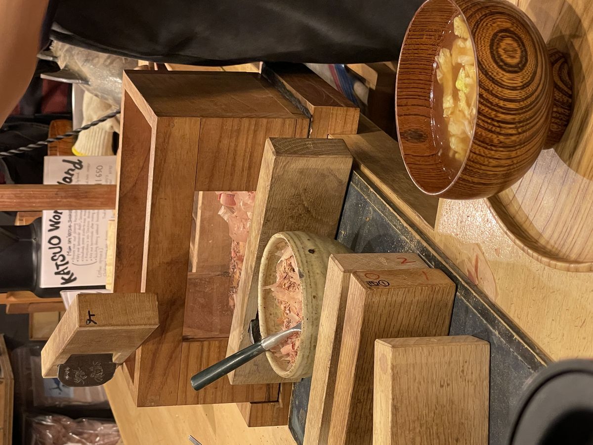 소박하면서도 가장 일본다운 아침을 느껴보고 싶다면, 갓 지은 밥 위에 가다랑어를 갈판에 갈아서 올려주는 카츠오 식당에 방문해 보세요. 눈앞에서 직접 가는 가쓰오부시 한 줌을 따끈한 밥위에 올려 된장국과 함께 즐길 수 있는 식당이랍니다. 비주얼은 심플하지만, 깊은 감칠맛을 느낄 수 있어 잊지 못할 한 끼 식사가 될 거예요. 좌석 수가 적으니, 아침에 조금 서두르는 게 좋습니다.