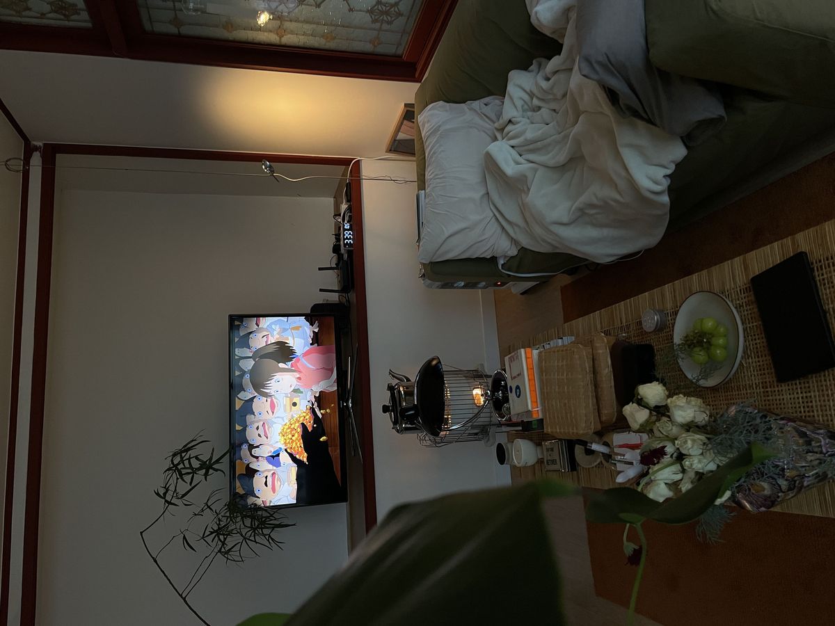 TV 앞에 언제든 편하게 누울 수 있도록 소파를 세로로 배치했고, 바닥에는 러그를 깔아두어 한 명이 소파에 있으면 다른 한 명은 푹신한 바닥에 종종 누워 있기도 해요.