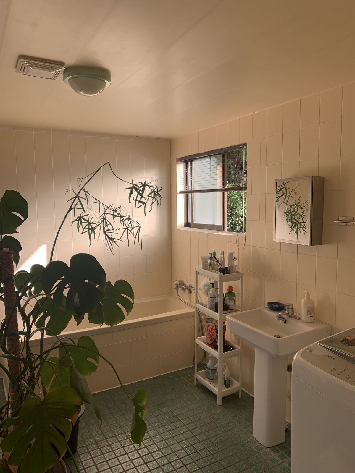 이런 구조를 ‘물부엌’이라고 부른다고 해요. 부엌에 딸린 수도 공간을 의미하는데, 이전 주인분께서 욕실로 리모델링해 사용하셨고, 저희는 벽타일에 페인트만 새로 칠해 세탁실 겸 화장실로 쓰고 있어요.