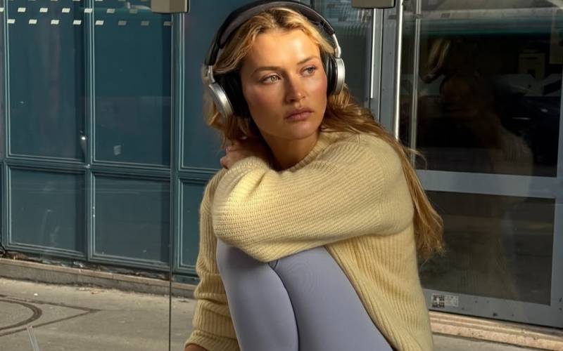 」애슬레저 룩이 자칫 운동복처럼 보이는 큰 이유 중 하나는 컬러가 분산되기 때문입니다. 반대로 색감을 하나의 톤으로 정리하면 같은 소재와 실루엣도 훨씬 고급스럽고 의도적인 무드로 보여지죠. 패션 크리에이터의 스타일링처럼 레몬 옐로우 브라 톱, 양말, 운동화를 한 컬러로 통일한 다음 카페로 이동할 때는 베이지 니트를 걸쳐 뉴트럴 톤으로 부드럽게 마무리해 보세요.