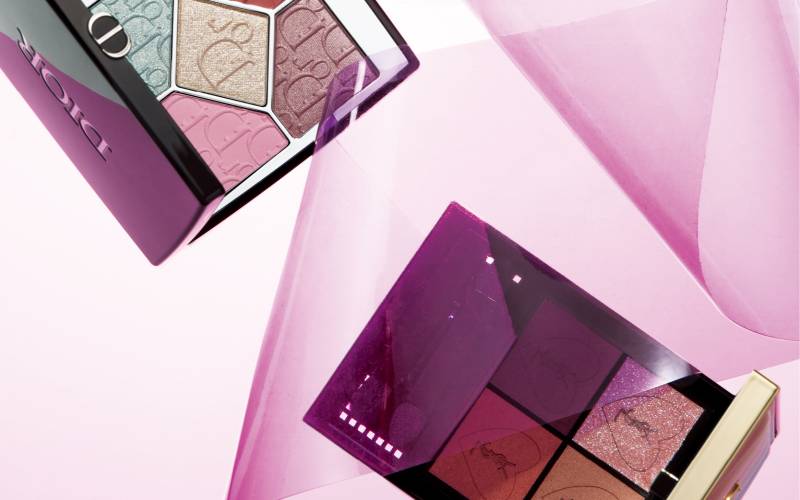 퍼플부터 화이트, 블루 등 ‘통통’ 튀는 포인트 컬러가 다섯 가지나 담겼다. 아이섀도와 케이스에 새겨진 까나쥬 패턴이 시선을 사로잡는 까나쥬 리미티드 에디션 디올쇼 5 꿀뢰르, 964 라일락 튤, 10만8천원대, Dior Beauty.