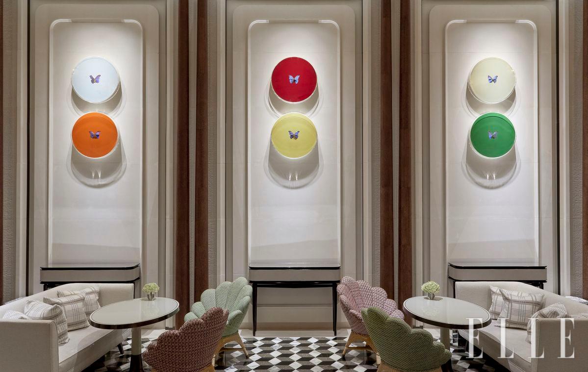 “어른이 되면서 잃어 버리는 것 중 가장 소중한 것은 경이로움을 느끼는 능력 같아요. 홍콩의 가장 강력한 문화적 상징인 ‘복(福)’, 번영을 상징하는 숫자 ‘8’, 붉은 색, 용 을 여덟 살 아이의 눈으로 다시 보고 싶었습니다. 가장 직관적이고 단순한 눈으로 말이에요.” 프랭키는 자신의 어린시절 상상력을 길러준 영화 <피트의 드래곤> <고스트 버스터즈> <백 투 더 퓨처>, 책 <괴물들이 사는 나라> 등의 문화 코드를 결합해 ‘러키 드래곤’을 완성했다고 덧붙였다. 이 밖에도 로즈우드 홍콩에선 눈길 닿는 곳마다 방대한 아트 컬렉션과 마주할 수 있다. 로비에선 린 채드윅의 ‘Pair of Walking Figures– Jubilee’(1977)가 반겼고, 애프터눈 티 플레이스인 ‘더 버터플라이 룸’에 들어서면 데미언 허스트의 ‘Zodiac’ 콜렉션이 한쪽 벽에 가득했다.