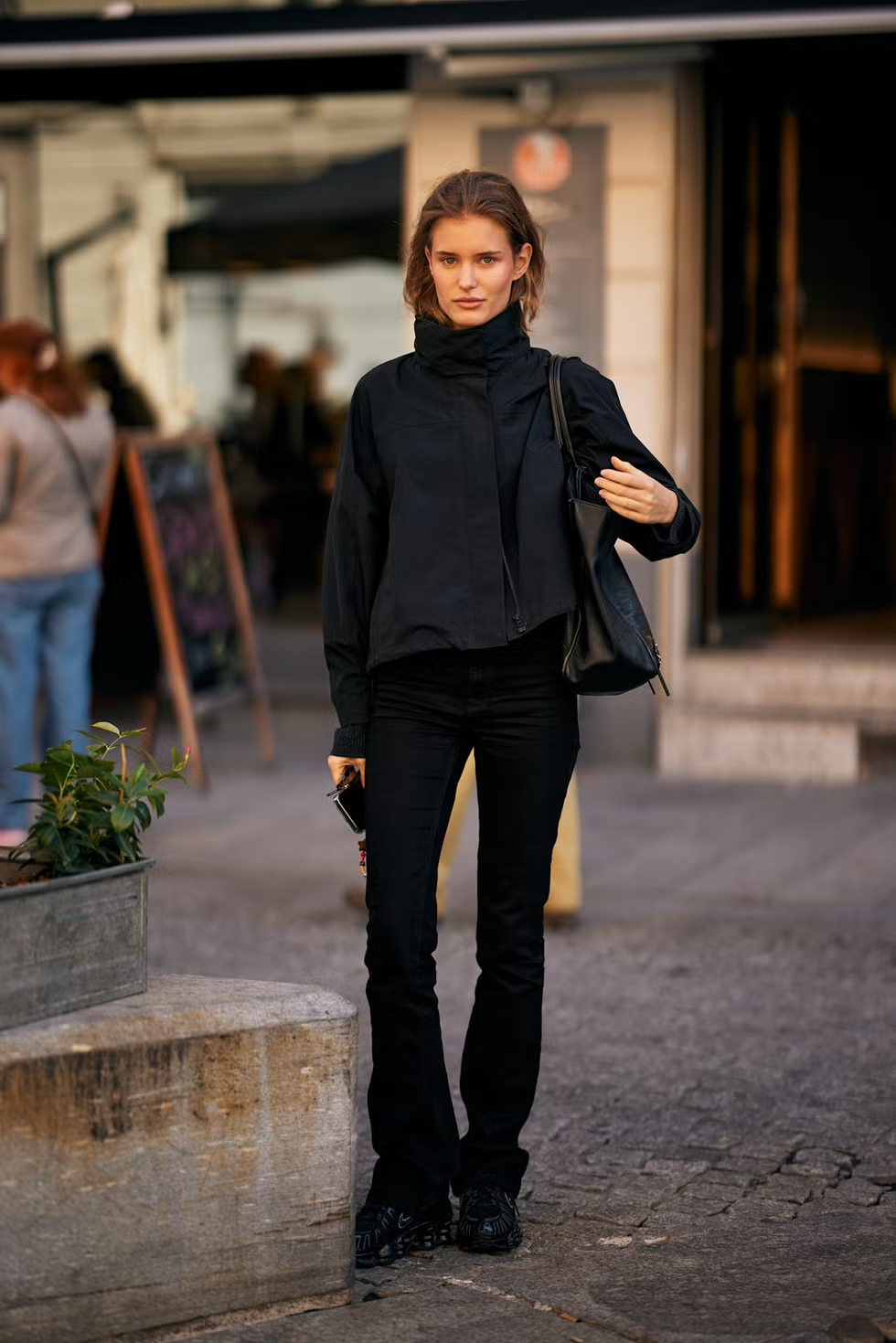 보다 활동적인 무드를 선호한다면 스니커즈를 활용한 스타일링이 제격입니다. 데님과 스니커즈의 조합은 오랜 시간 사랑받아온 클래식이지만, 최근에는 부츠컷과 함께 매치하는 방식이 다시 주목받고 있죠. 특히 올 블랙 스타일링은 실패 확률이 낮은 선택입니다. 블랙 컬러의 부츠컷 진에 좋아하는 스니커즈를 더하고, 여기에 윈드브레이커 재킷을 매치하면 현재 가장 주목받는 스포티 룩을 완성할 수 있죠. 실용성과 스타일을 동시에 잡고 싶은 날 특히 유용한 조합입니다.
