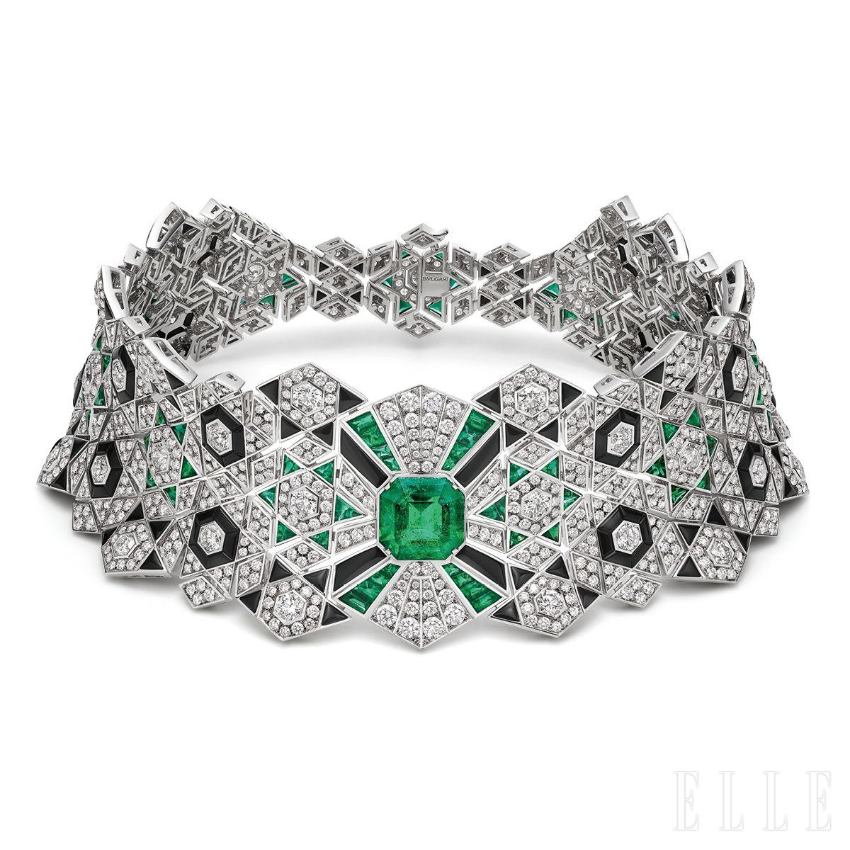 피렌체 인근 삼메차노 성의 장식적인 기하학에서 영감을 받은 네크리스로 무어식 모자이크(Moorish Mosaics)와 아라베스크 문양을 건축적 조형미를 지닌 주얼리로 해석했다. 10.12캐럿 옥타곤 컷 콜롬비아산 에메랄드를 파베 세팅한 다이아몬드와 에메랄드, 블랙 오닉스가 둘러싸고 있다. 180개의 모듈을 정밀하게 설계해 유연한 움직임과 부드러운 착용감을 구현했다.