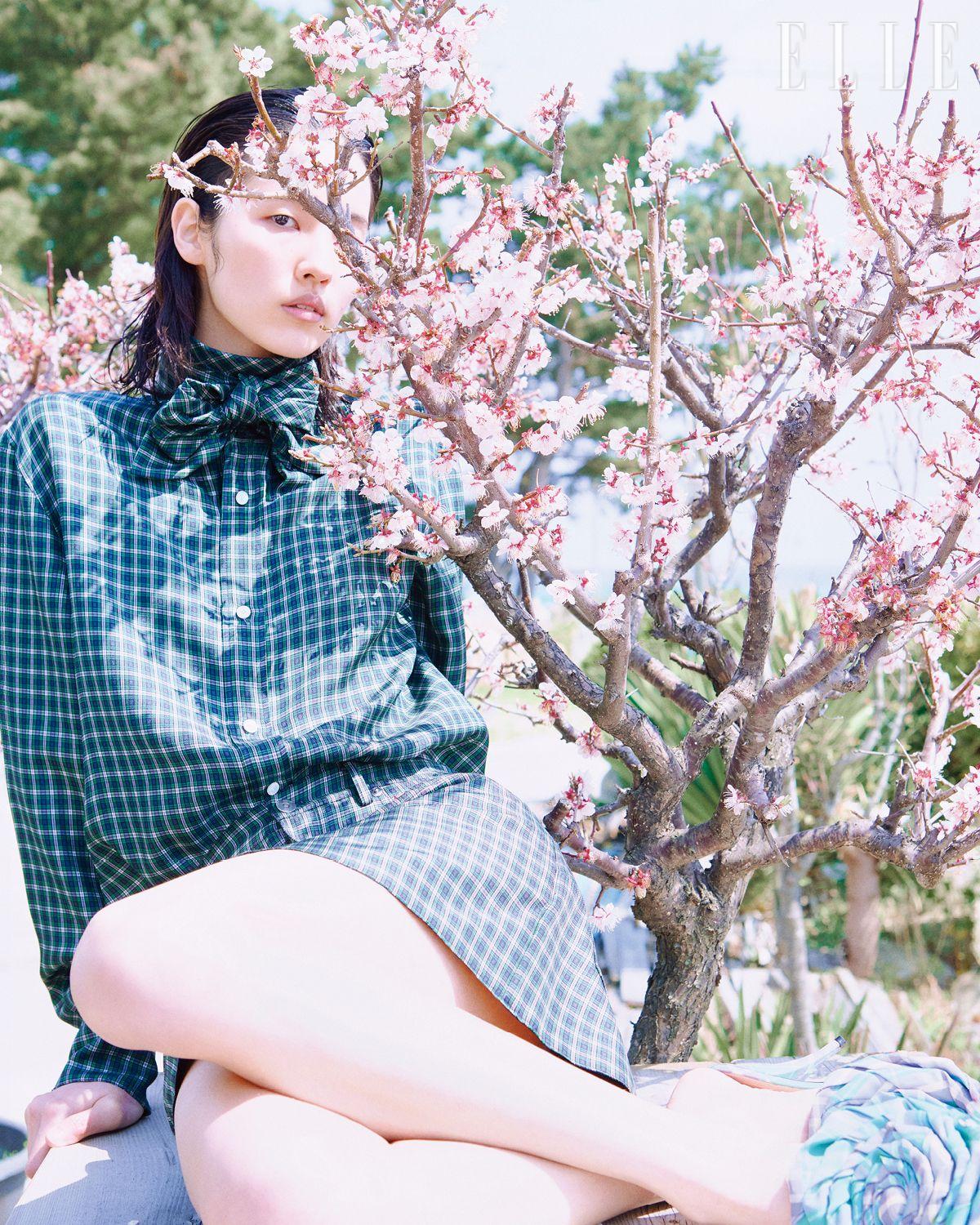 실크 체크 블라우스와 체크 미니스커트, 실크 타탄 디올 오로르 샌들은 모두 Dior.