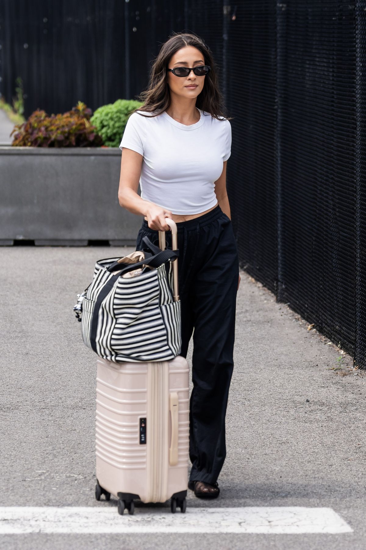 운동화를 따로 챙기려면 생각보다 많은 공간이 필요합니다. 특히 러닝화는 캐리어 안에서 부피를 꽤 차지하죠. 모라 히긴스처럼 애슬레저 점프수트와 러닝화를 함께 매치해보세요. 공항에서는 물론, 도착 후 가벼운 일정까지도 자연스럽게 연결될 수 있는 조합이니까요. 단 한 벌만으로도 다채로운 상황에 대응할 수 있다는 점에서 꽤 실용적인 선택이죠.