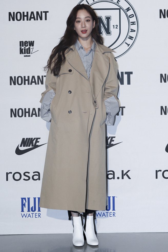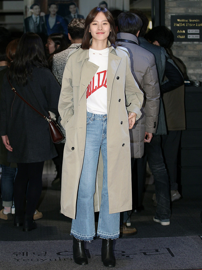 평범한 트렌치코트도 그녀가 입으면 다르다. 셔츠 소매는 쭉 내려 입고, 트렌치코트의 소매는 확 올려 입은 정려원. 여기에 화이트 앵클 부츠로 감각적인 패션을 뽐냈다.