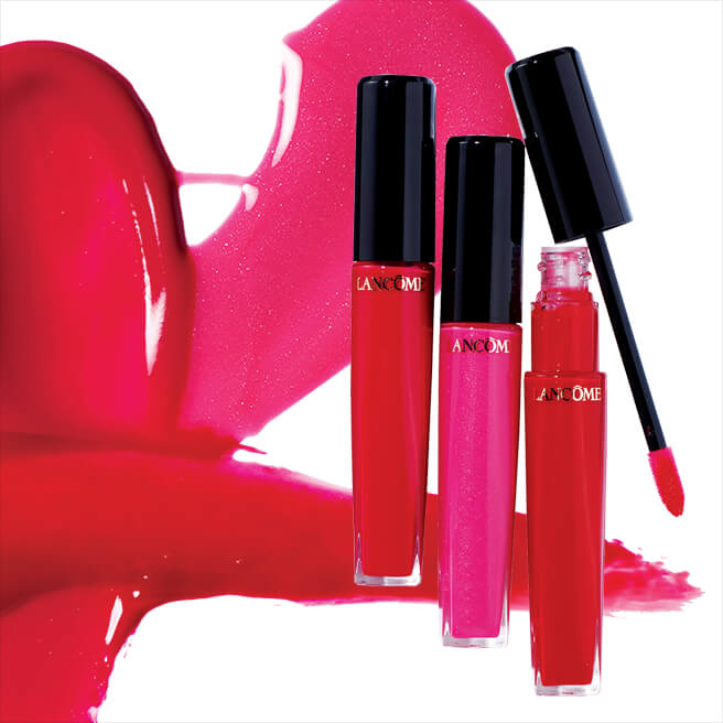 부드럽게 발리며 선명하게 발색되고, 입에 착 달라붙는 텍스처! 압솔뤼 로즈 글로스, 벨벳 마뜨 #378 릴리 로즈, 쉬어 #317 핑크 홀릭, 크림 #132 레드 클릭. 각 4만2천원대, Lancome.