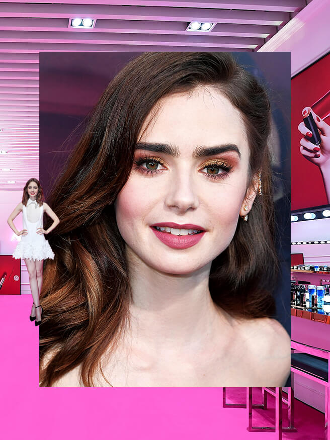짙고 강인한 눈썹과 총명한 눈빛이 매력적인 배우 릴리 콜린스. 이날엔 랑콤 압솔뤼 루즈, 367 부케 피날레를 발랐다고 직접 귀띔해 주었다.