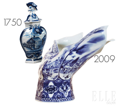 1750 Glass Globe 블루와 화이트, 그리고 시누아즈리…, 17세기에 처음 만들어진 델프트 파이앙스(도자기)는 그 시대 시크함의 절정을 상징했던 중국 도자기를 그대로 모방한 것이다. 그 뒤 도자기에 꽃 그림과 전원 풍경이 등장했고 영국 왕실부터 플랑드르 농부까지 모두 다 갖게 됐다. 그야말로 대히트를 친 셈이다.