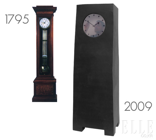 2009 `Grandfather Clock’ by Maarten Baas 네덜란드 디자이너 마르텐 바스는 영화와 디자인을 결합해 팀 버튼 영화에서 나올 법한 멋진 시계를 디자인했다. 눈금판에서는 디자이너가 직접 연출한 장편영화가 24시간 상영된다. 분침이 지날 때마다 한 남자가 손으로 일일이 시곗바늘을 지우고 다시 쓰는 것이다. 마치 마술이 펼쳐지는 것 같다. 디자이너의 천재적인 아이디어에 감탄을 보낸다.