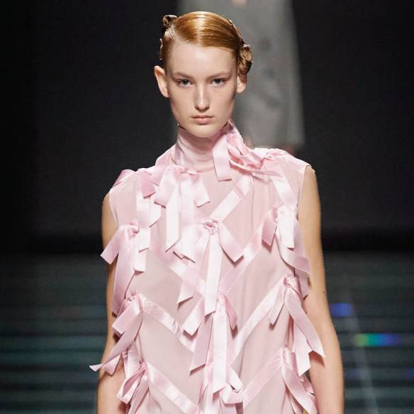 허리 벨트의 장식으로 쓰이던 리본이 모던하고 과감하게 자리 잡았다