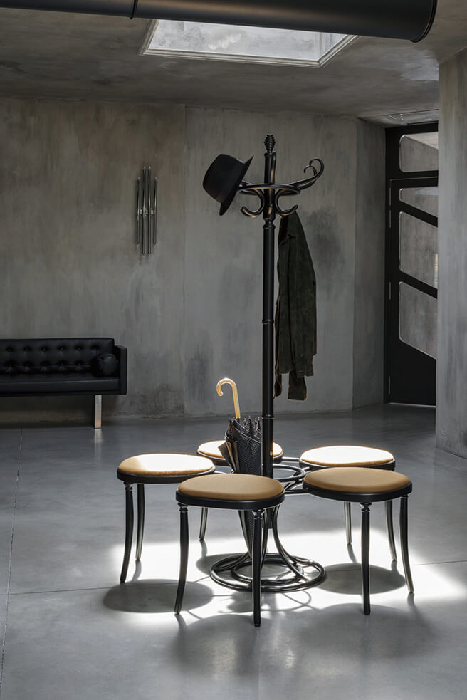 프랑코 멜로(Franco Mello)와 리언드로 아고스티니 (Leandro Agostini)의 예술 혼이 담긴 흥미로운 벤치를 한국에서도 만날 수 있다. 중앙에는 옷을 걸 수 있는 행거와 우산을 꽂을 수 있는 바스켓을 두어 세 가지 기능을 동시에 해낸다. 넨도의 ‘싱글 커브 체어’로 유명한 이탈리아 브랜드 GTV에서 생산한다. 성북동 챕터원 꼴렉트에서 주문할 수 있다.