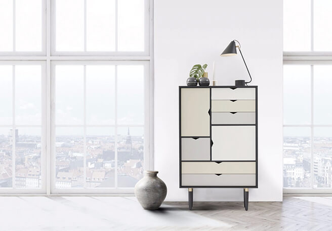 북유럽 인테리어라면 반드시 하나씩 보이는 가구인 사이드보드. 덴마크 브랜드 앤더슨 퍼니처에서는 입맛대로 사이드보드를 만들 수 있다. 슬라이딩 도어의 컬러나 서랍의 소재를 고를 수 있는 건 물론이고 개수도 정할 수 있다. 북유럽 가구다운 자연스러운 멋도 놓칠 수 없다. 연결 부분에 못과 레일 같은 철재 하드웨어를 전혀 사용하지 않고 목재의 짜임 구조를 적용해 전통적인 스칸디나비아 캐비닛 메이킹 방식을 활용했다. 이만하면 소장가치 충분하다. 이노메싸에서 구입.