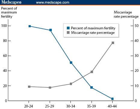 나이에 따라 가임력이 저하됨을 보여주는 그래프