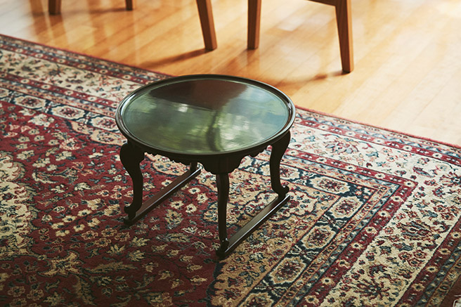 거실의 페르시언 카펫 위에 놓인 단정한 소반. 점점 자리를 많이 차지하지 않는, 작은 가구가 좋아진다는 집주인의 취향이 느껴진다.