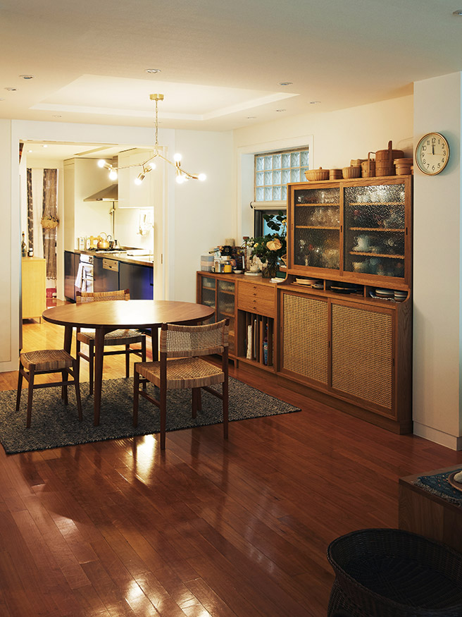 거실에서 바라본 부엌과 다이닝 룸. 수납장은 갖고 있는 그릇의 크기에 맞게, 탁자와 의자는 사는 사람들의 키에 맞게 만들어 더욱 편안하다.