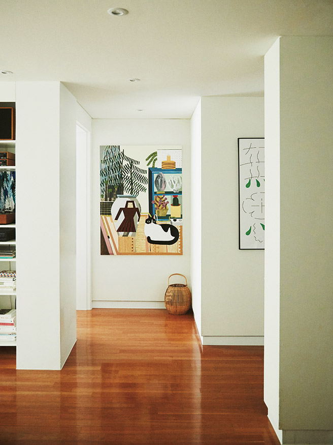 침실로 들어가는 벽에는 이미주 작가의 작품이 걸려 있다. 두 마리의 고양이와 함께 살고 있는 김희선 대표에게는 더욱 애틋한 그림이다.