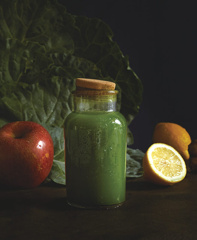 사과 200g, 케일 60g, 샐러리 20g, 생강·레몬 10g씩